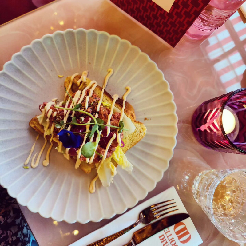 De sfeer is uitgelaten en bruisend, en je wordt omringd door smaken uit alle hoeken van de wereld. Of je nu kiest voor een ontspannen lunch of een uitgebreid diner in een van de gezellige lounge plekken, of je plaatsneemt aan de oogverblindende marmeren bar voor een kleurrijke cocktail, je voelt je meteen in een andere wereld.